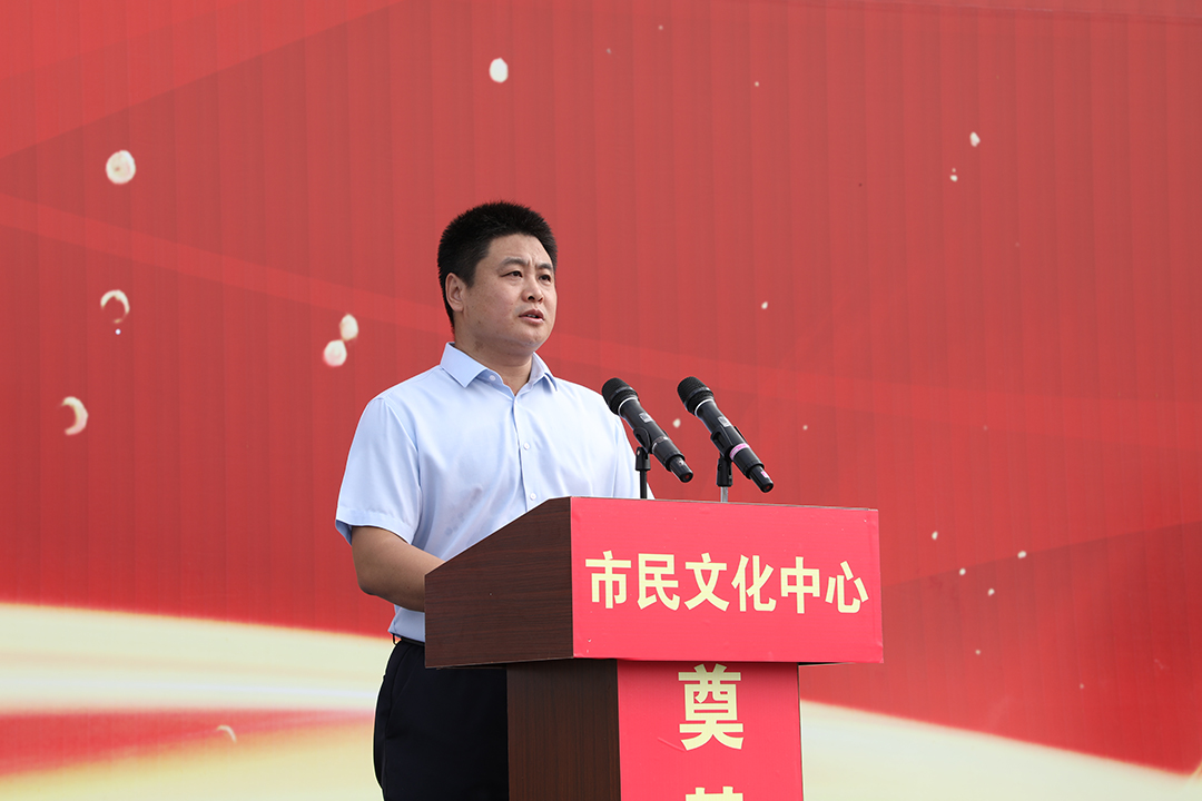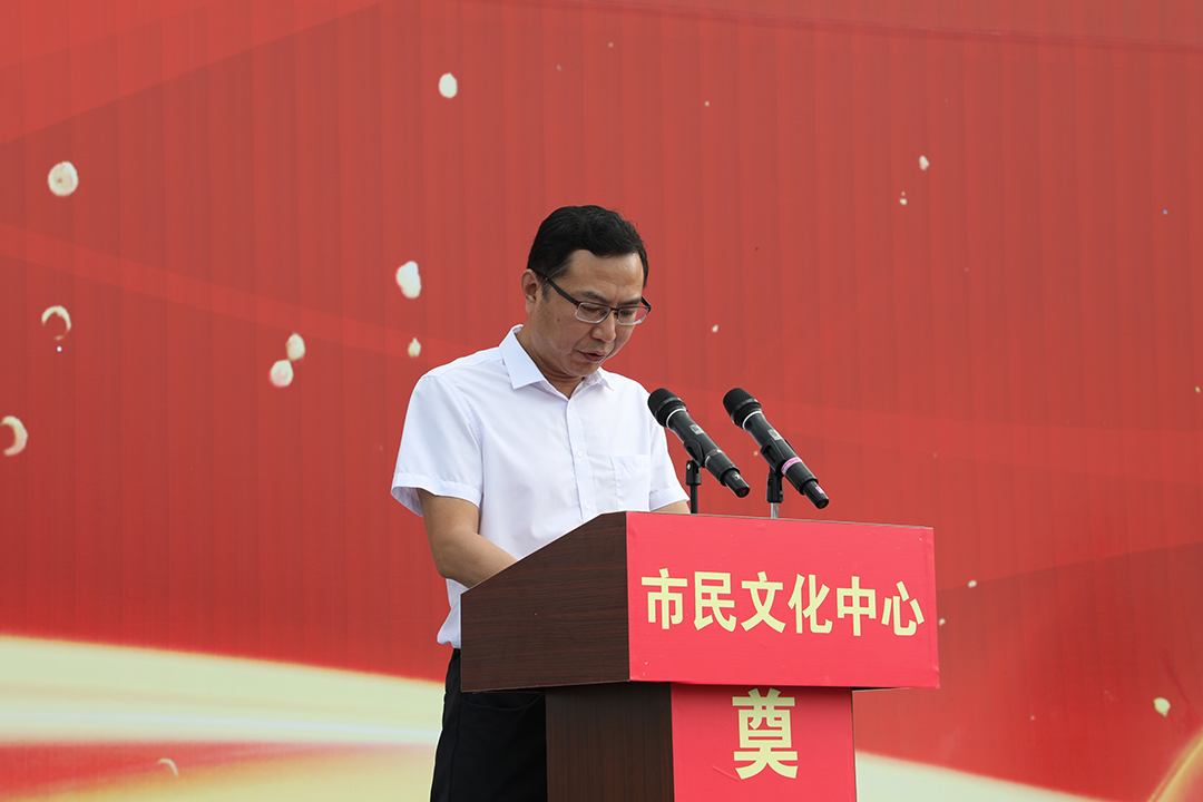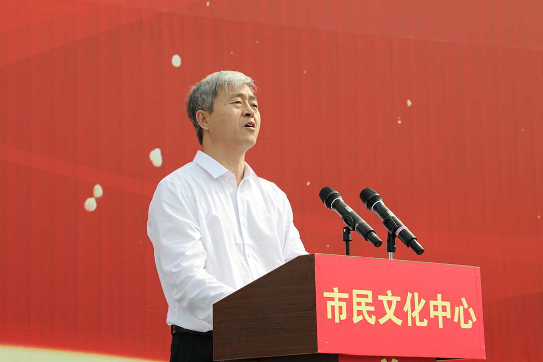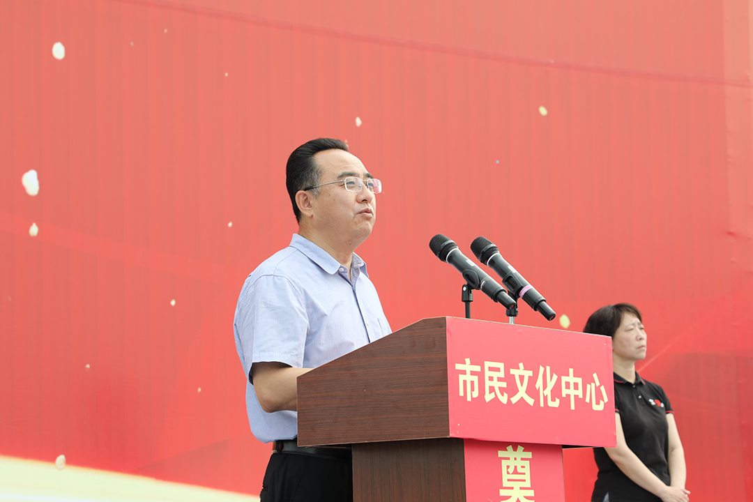 為帶動城市建設(shè)和文化產(chǎn)業(yè)的高質(zhì)量發(fā)展,提升市民的幸福感和滿意度,6月28日上午,市民文化中心項目正式開工建設(shè)。區(qū)委書記王宏偉致辭并宣布項目開工,區(qū)委副書記、區(qū)長王驍主持儀式,區(qū)人大常委會主任于立武、區(qū)政協(xié)主席劉英會、區(qū)委常委、副區(qū)長屈耀武、區(qū)委常委、區(qū)委辦公室主任龔標、區(qū)政協(xié)副主席顏丙華、龍橋街道黨工委書記顏丙輝、區(qū)住建局局長鄒紅、山東兗建黨委書記、總經(jīng)理孫志剛及天津城市規(guī)劃設(shè)計研究院副院長侯勇軍、蘇州金螳螂集團有限公司副總裁王進參加了奠基儀式。